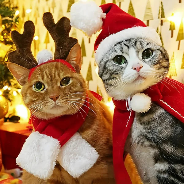 1/2pcs Conjunto de Decoração Natalina para Gatos, Chapéu Vermelho do Papai Noelo e Capa Aquecedor com Acessórios Tiara Antlerpara Filhotes .