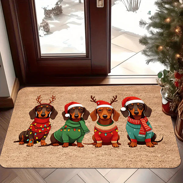 Tapete de Natal para Porta com Design de Dachshund, Chapéu e Suéter
