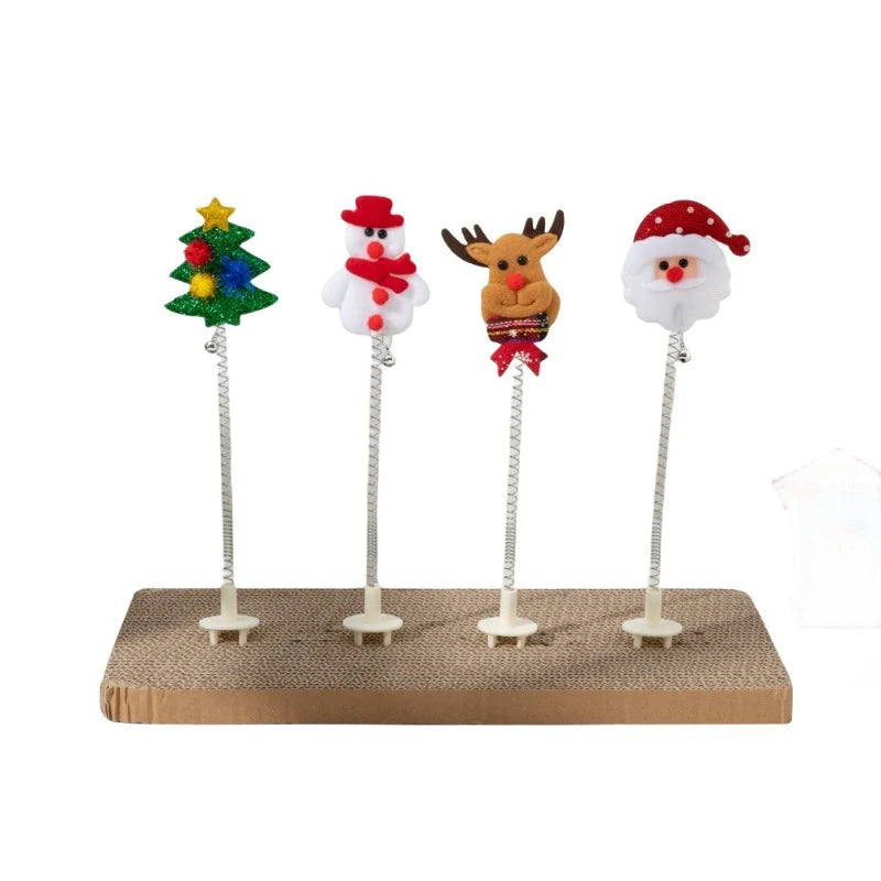 Brinquedo de Gato de Natal - Poste de Arranhar de Pelúcia de Papai Noel e Renas com Enfeites