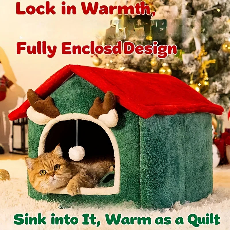 Casa de Gato Natal . Aconchegante e Quente para Todas as Estações com Forro Felpudo & Cerca Reforçada