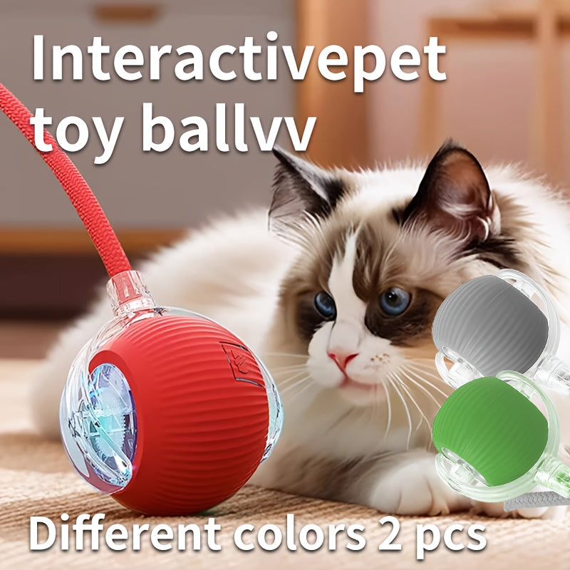 Conjunto de 2 bolas interativas para gatos com motor recarregável por USB e movimento de rolamento aleatório