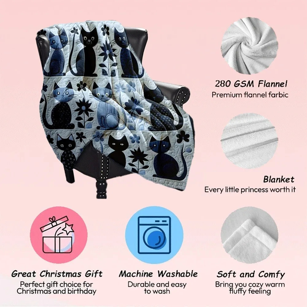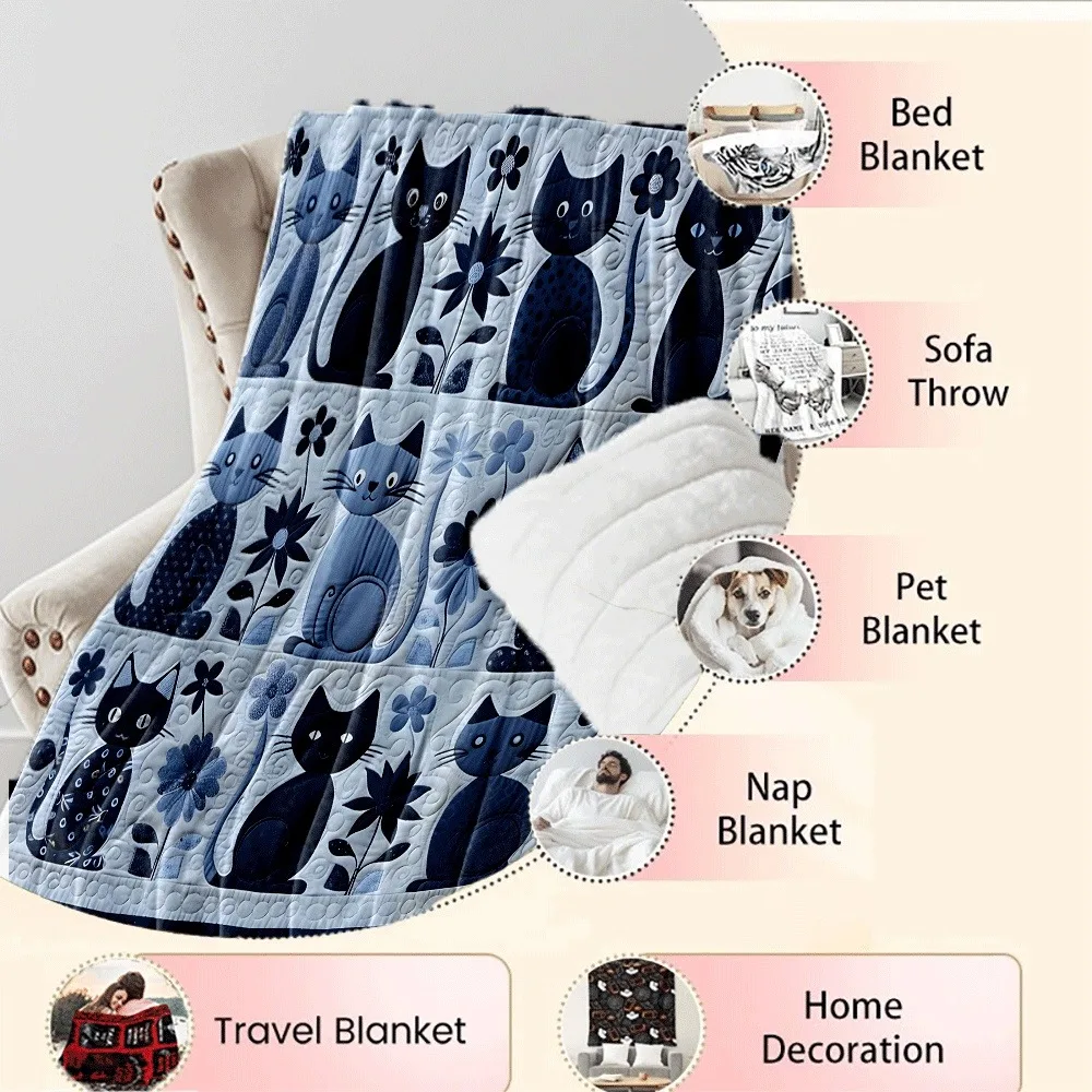 Manta acolchoada fofa com estampa floral de gato azul, ideal para camping, viagens, sofá e cama. Manta aconchegante e quentinha para amantes de gatos,.
