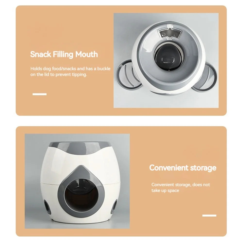 4. Jogo de Estimulação Cognitiva: Treine seu cão para buscar uma bola e colocá-la no local designado na máquina de recompensa com comida para cães para receber um petisco, transformando a hora da refeição em um jogo divertido e recompensador.