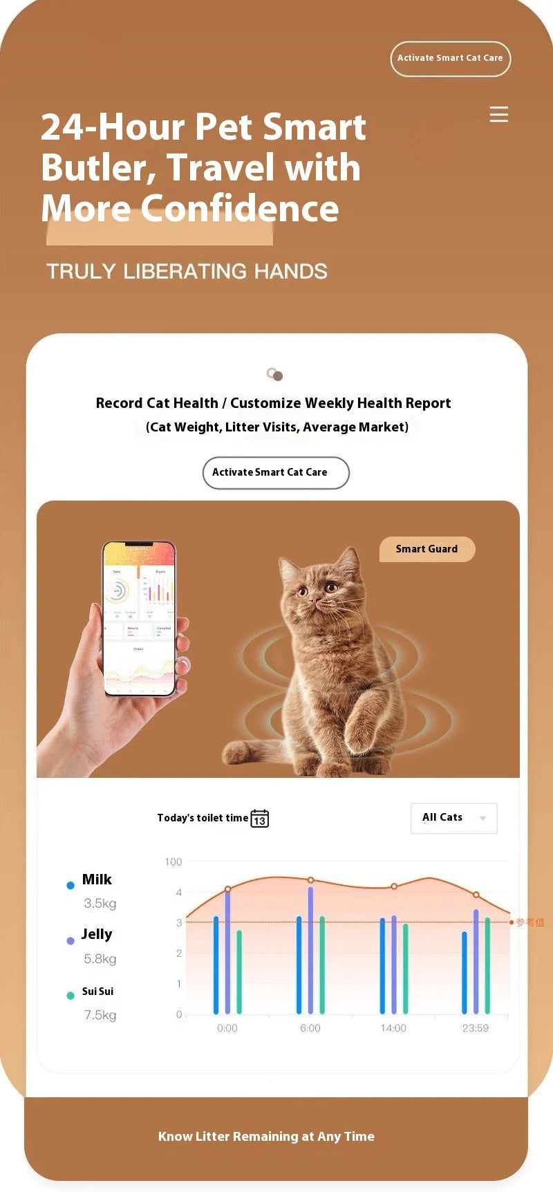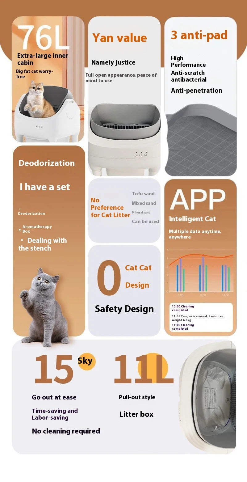Caixa de areia inteligente nova, disponível na UE. Modelo aberto, com capacidade de 11 litros. Controle por aplicativo, totalmente automática.