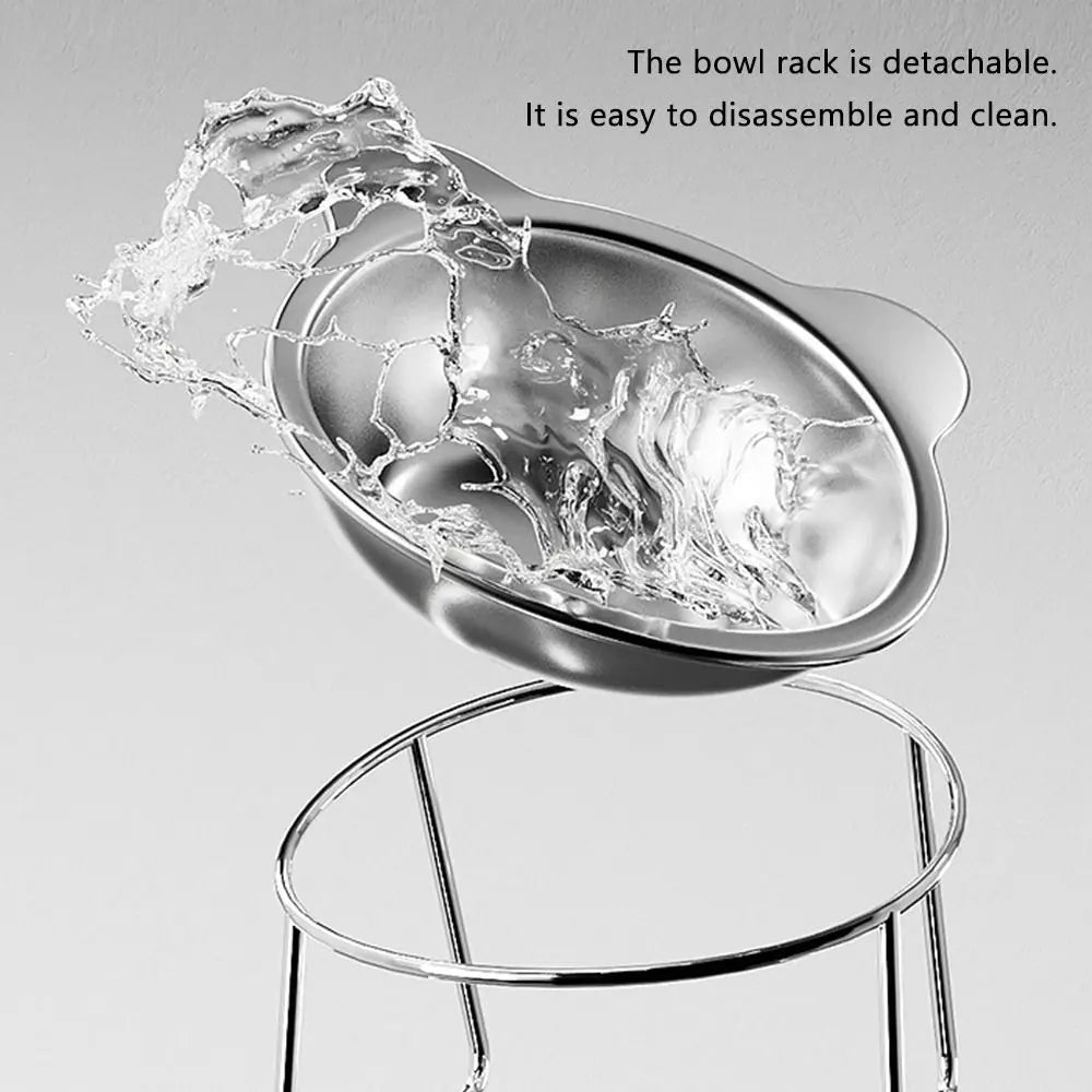Tigela elevada para gatos com proteção de pescoço inclinada, feita em aço inoxidável, com inclinação de 15°, ideal para filhotes e gatos.
