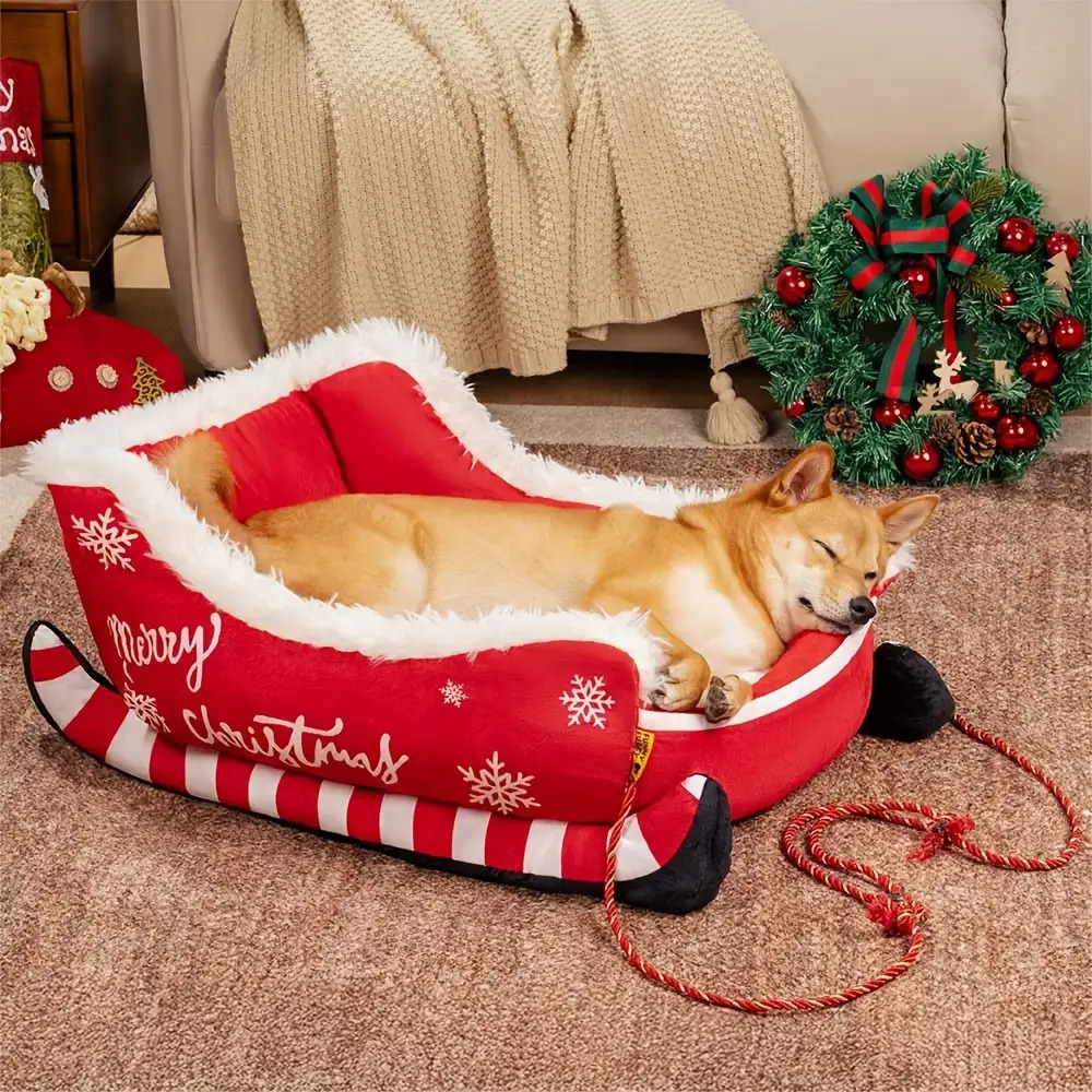 Cama de Natal para Cães com Texto de Boas Festas - Cama para Animais de Estimação com Flocos de Neve Vermelhos e Brancos, Tecido de Polipropileno Durável, Sem Necessidade de Montagem, Uso Interior/Exterior para Cães Pequenos a Grandes - Decoração Fe