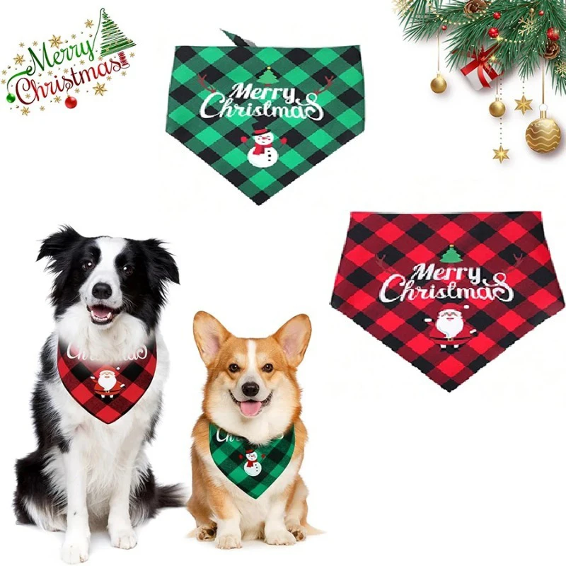 Cachecol triangular natalino para cães de estimação com estampas de Papai Noel e boneco de neve, tamanho ajustável