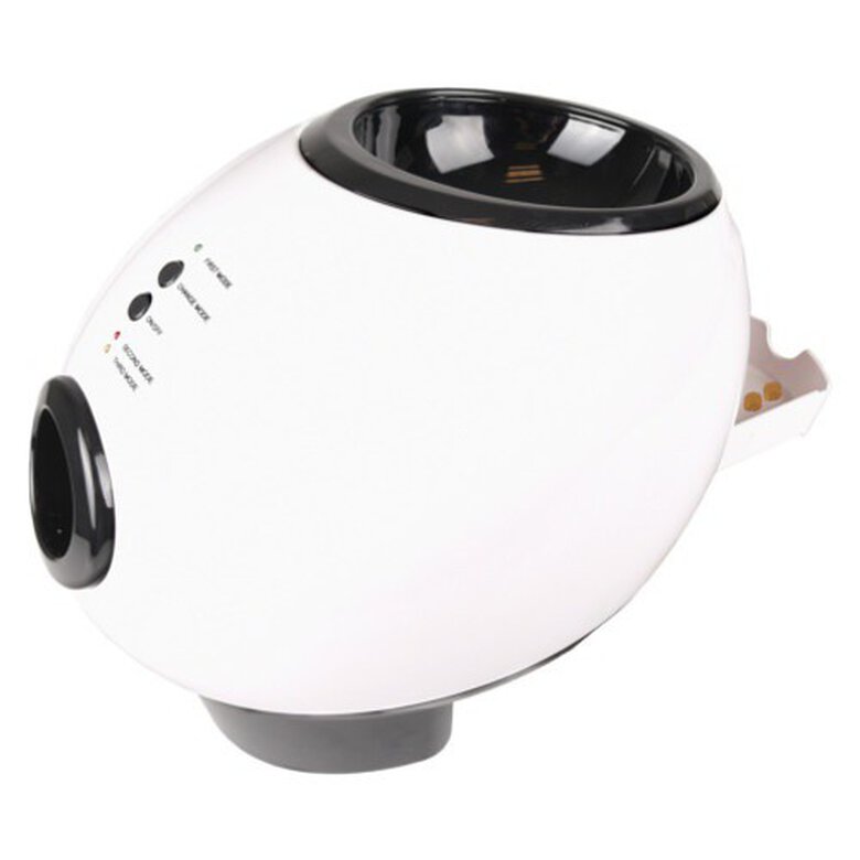 O dispensador de bolas e guloseimas para cães é um brinquedo inteligente ideal para treinar o seu peludo enquanto se diverte. Trabalho seguido de recompensa: cada vez que o lançador arremesse a bola, abrir-se-á uma gaveta cheia de guloseimas. Além do mais, pode configurar para percorrer distâncias mais curtas ou mais longas, por tanto é perfeito para brincar tanto no interior como no exterior.Este divertido lançador de bolas estimula o instinto de recuperação do seu cão. Apenas terá de colocar a bola de ténis no furo superior para que, automaticamente, seja arremessada pelo furo da frente. Na parte traseira tem duas gavetas pequenas que se abrem após o lançamento, assim o seu cão encontrará a sua recompensa logo após ter recolhido a bola. Poderá encher com a ração ou com as suas guloseimas favoritas (com um tamanho máximo de 1 cm ø). Uma forma estupenda de promover a atividade e o exercício para que o seu cão se mantenha em forma e feliz. Os 3 modos disponíveis atingem 5 m, 7,5 m ou 10 m. Além do mais, inclui 6 bolas para maior diversão.